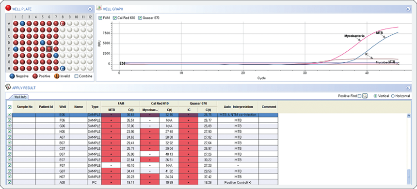 Anyplex™ MTB/ NTM Real-time Detection detektiert Mycobacterium tuberculosis (MTB) bei einer gleichzeitigen Differenzierung von nichttuberkulösen Mykobakterien (NTM). Dieser Assay beruht auf der urheberrechtlich geschützten Technologie DPO™ und einer Multiplex-Echtzeit-PCR. Er liefert schnelle und genaue Ergebnisse zur effizienten Diagnose und Behandlung von TB.