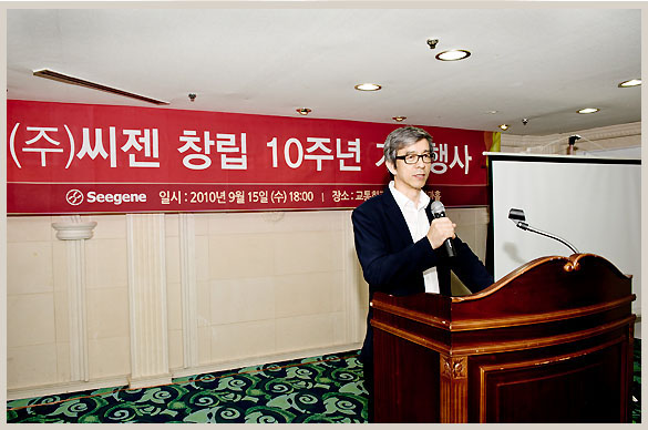 Seegene held its 10th anniversary celebrations at the Seoul Traffic Center on 15th September with the participation of its executives and employees and partner employees, including CEO Chun Jong Yoon.