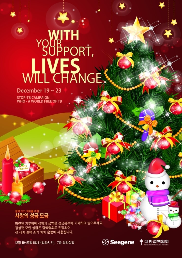 Seegene is also participating this global campaign by supplying TB detection kits for nations or organizations to benefit the patients who are suffering from TB and the world in a bigger picture. We expect Seegene’s innovative TB one-stop solution product which enables early diagnosis and accurately detects TB will make a great contribution to combat TB.