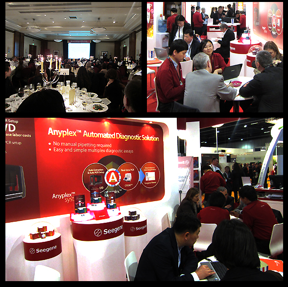 Seegene participated ECCMID for 4 days from March 31 in London, England and exhibited a booth there. It is the conference that organized by clinical microbiology and infectious disease specialists in Europe and apporxiamtely 9,000 participants attended this conference this year. Seegene Inc. a representative of Korean molecular diagnostic companies solely exhibiting a booth in ECCMID every year and we’ve promoted products such as RV, STI based on Seegene’s proprietary technology this year. What made Seegene’s product stood out from any others would be the new concept of Real-time PCR which allows detecting multiple pathogens in a single reaction. A lot of visitors of our booth showed their great interests to product brochures and posters. Furthermore, automated instrument called “The Nimbus” was exhibited at Seegene’s booth to represent how easy it is to extract, amplify and analyze the results using this instrument. Prior to the exhibition, Seegene Inc. invited current or recently joined distributors throughout the Europe and held a workshop for marketing tactics for sales of new products. Also, on the 3rd day of ECCMID, which was April 2nd, we hold a dinner for our major customers in Europe. Along with performances of Jazz band, presentation regarding Seegene’s products that customer’s currently using (including sepsis) fulfilled customer satisfaction and provided wonderful chances to share information. Medical doctors from Asan Medical Center in Seoul who participated in ECCMID visited Seegene’s booth and supported us and commented “it is thrilled to see how local molecular diagnostic company is competing with major international molecular diagnostic companies in in overseas”. Meanwhile, London seemed to be busy preparing Olympic 2012 which will be held in July this year. ECCMID was held in the outside of downtown London where beautiful views of the Thames River can be seen. Participants might have enjoyed the great view along with the conference. ECCMID will be held in Berlin, Germany next year from April 27th 2013 and Seegene’s Europe branch office which located in Germany will do their best to prepare for next year’s conference. |
