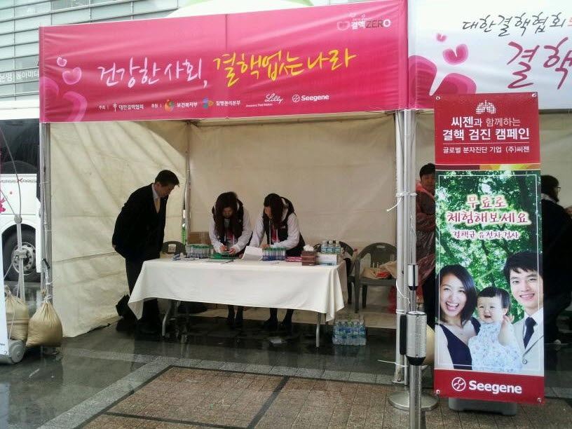 In a joint effort with Korean National Tuberculosis Association, Seegene, which signed a partnership agreement with the Association to work for tuberculosis eradication, will comprehensively examine visitors to its Tuberculosis checkup booth for tuberculosis, atypical tuberculosis, and drug-resistant tuberculosis through a tubercle bacilli molecular diagnosis test.