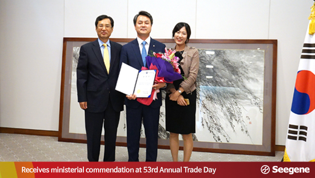 President James Jeehoon Park of Seegene Middle East received a commendation from the Minister of Trade, Industry and Energy at the 53rd Annual Trade Day event.