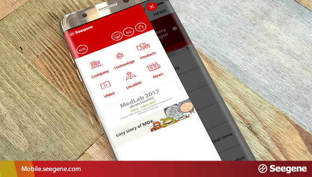 Seegene’s mobile website offers a simplified menu based on key data, and it also provides an at-a-glance display of important content and information such as the frequently used products and technologies and the most recent company news.